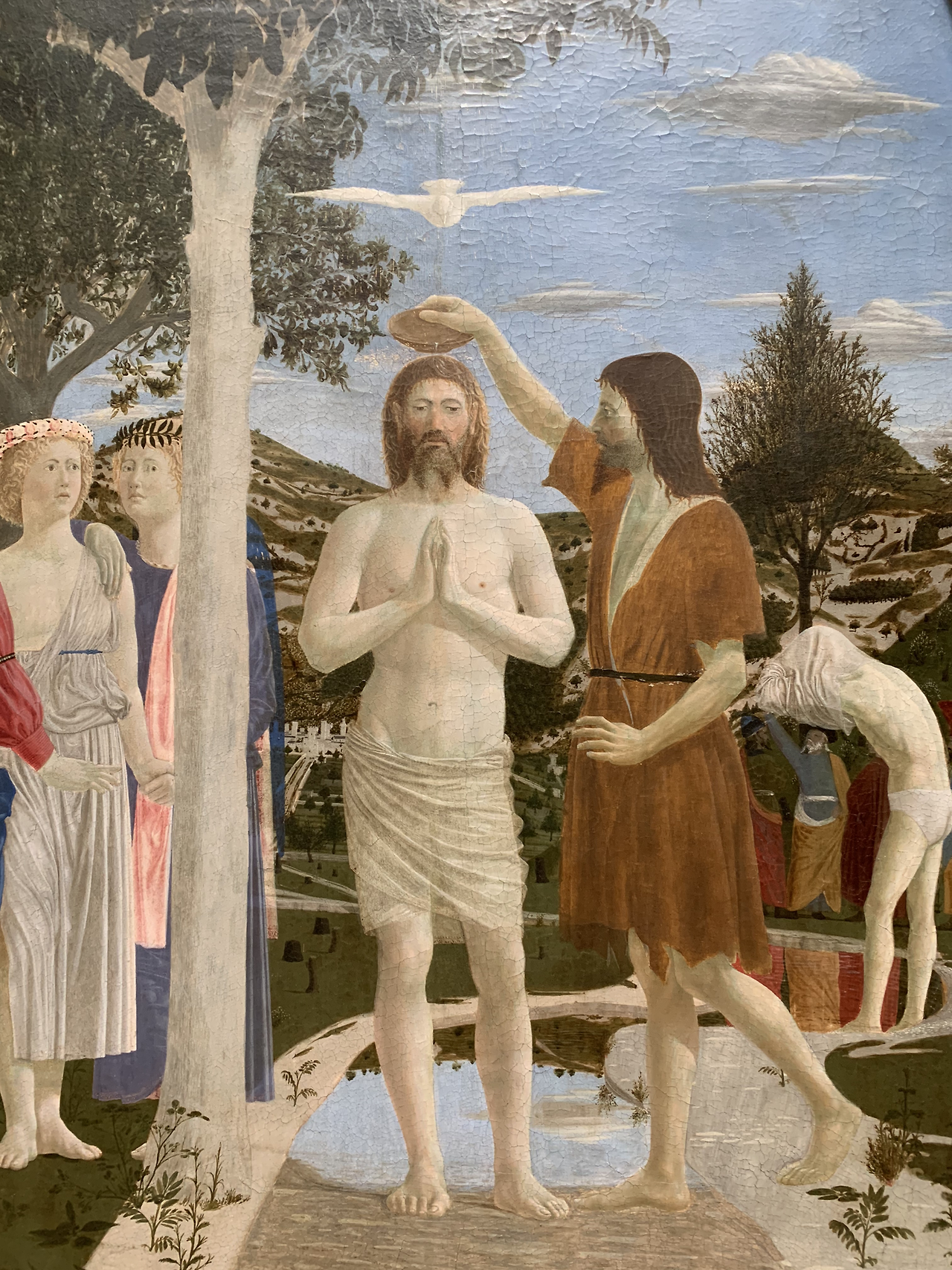 런던 국립미술관에서 처음 만나는 작품은 수도사이자 화가였던 프란체스카의 <그리스도의 세례>이다.