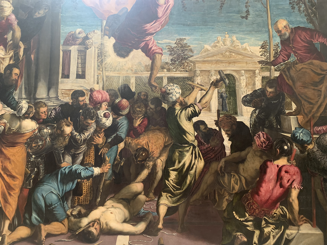 다음으로 티치아노의 제자로 초대형 회화를 주로 그린 틴토레토의 작품들 앞에서 회화가 살아 움직이는 듯한 생생함에 놀란다.