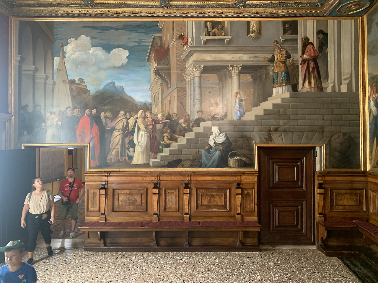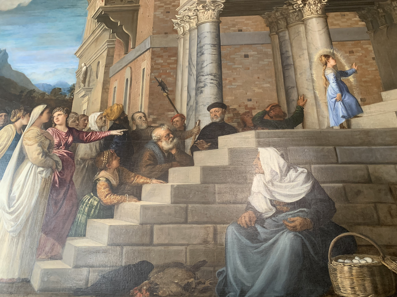 여행자의 눈길을 끄는 다음 작품은 티치아노의 벽화 <성모 마리아의 봉헌>이다.