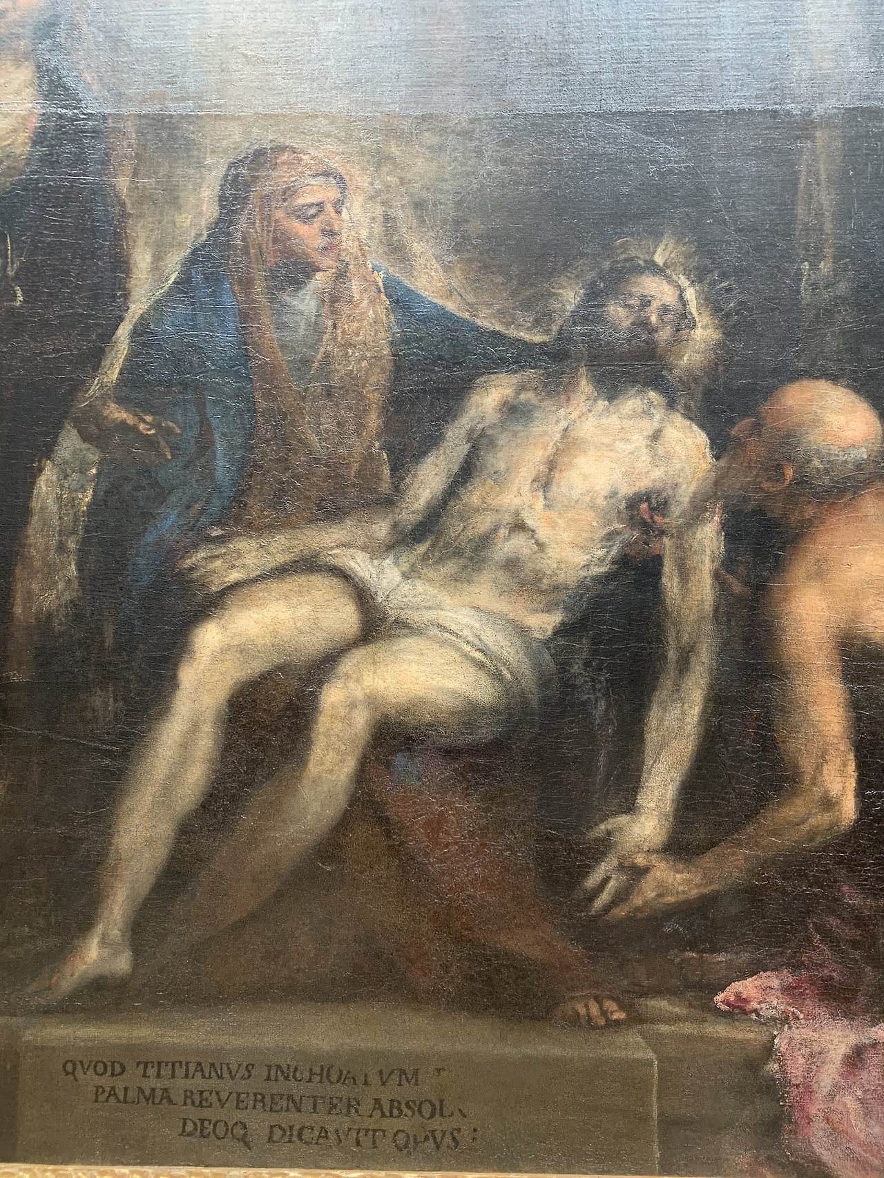 당시 카를 5세를 비롯하여 수많은 왕들의 초상을 그릴정도로 정교한 형태와 색을 구사한 티치아노는 자신의 무덤을 장식할 마지막 작품에 완벽한 기교를 쓰지 않고 마치 자신의 불완전한 영혼을 보여주듯 미완성적인 형태와 검은 배경을 사용하고 있다.