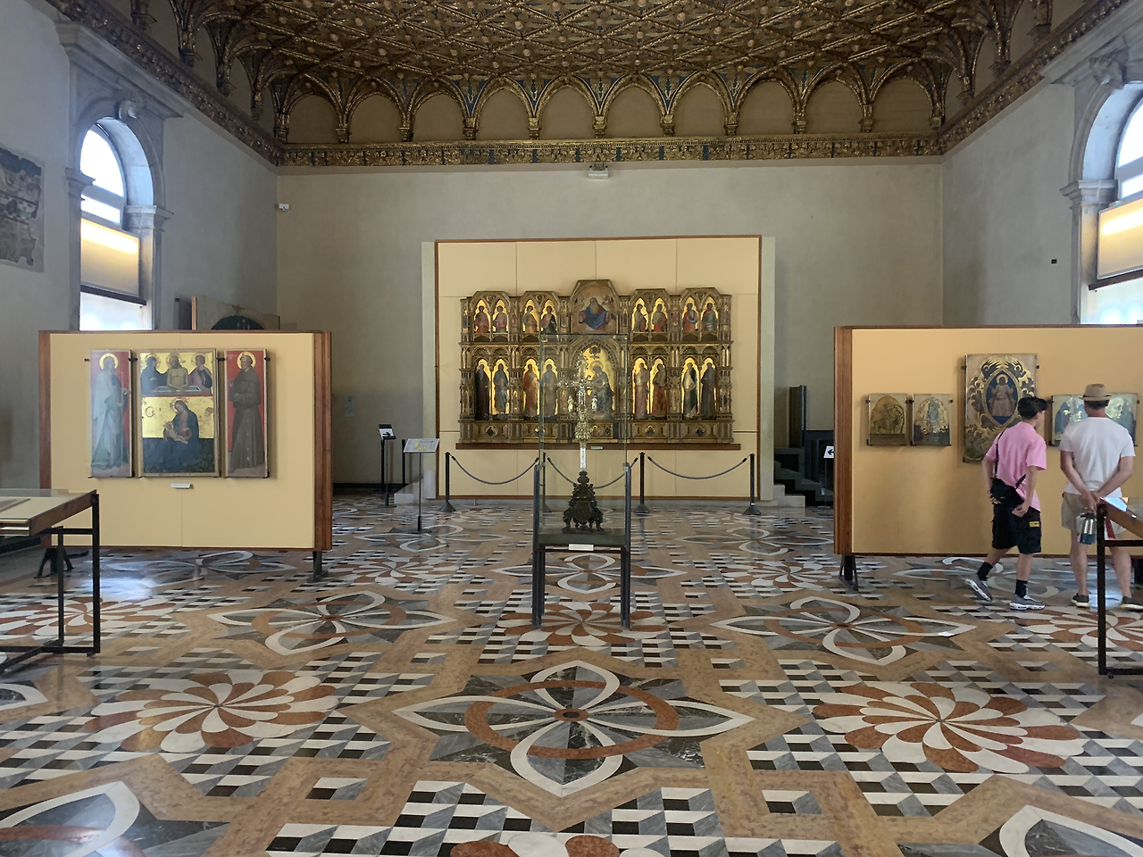 미술관으로 들어서면 형형색색의 대리석 위로 금빛 바탕에 상징적인 중세시대 화화가 여행자를 반긴다.