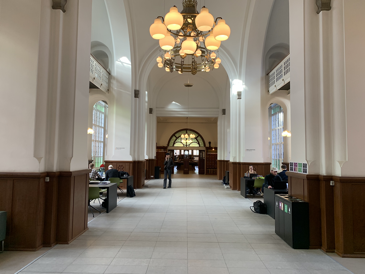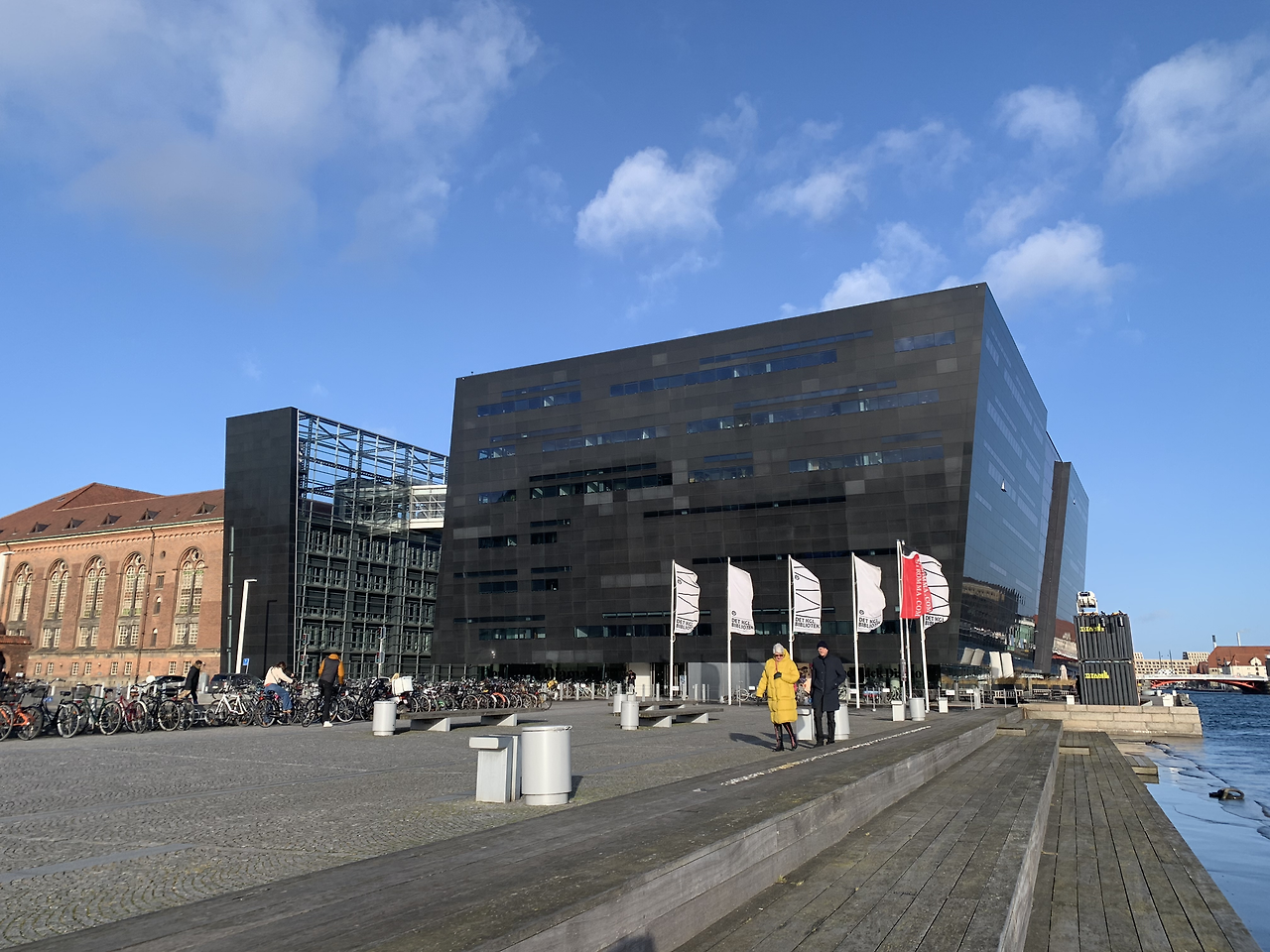 1996년에 공사를 시작해서 1999년 완공된 왕립 도서관은 검은색을 띠고 있으며 운하로 쏠려있는 마름모꼴 건물모양으로 <블랙다이아몬드>로 불린다. 7층짜리 신관 1층에는 카페와 식당 그리고 400석의 연주회장 등이 들어서 있으며 매 층마다 물결모양의 발코니가 뻥 뚫린 유리 천장을 향하여 용솟음치고 있다. 신관 2층으로 가서 구관으로 이어지는 통로를 지나면 <해리포터> 에서나 볼 수 있는 고전적인 양식의 열람실을 만난다. 과거와 현재가 연결되는 이 통로를 통해 시간여행을 해보는 것이 도서관 관람의 하이라이트이다.
