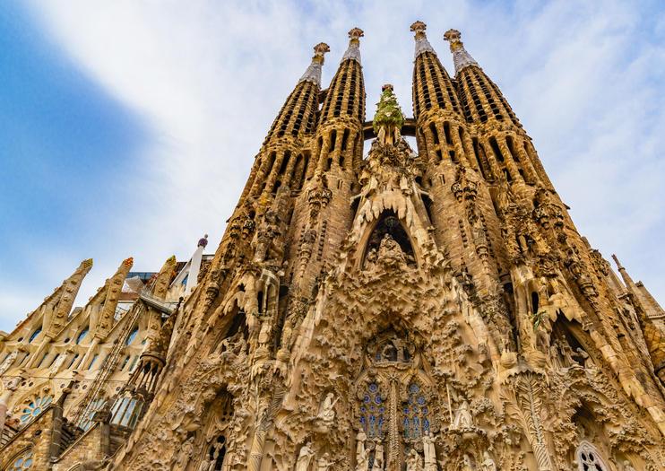 성가족 성당의 파사드는 동쪽의 <탄생의 파사드>와 반대편의 <고난의 파사드> 그리고 완성되지 않았지만 입구로 사용될 <영광의 파사드>로 이루어져 있다.
