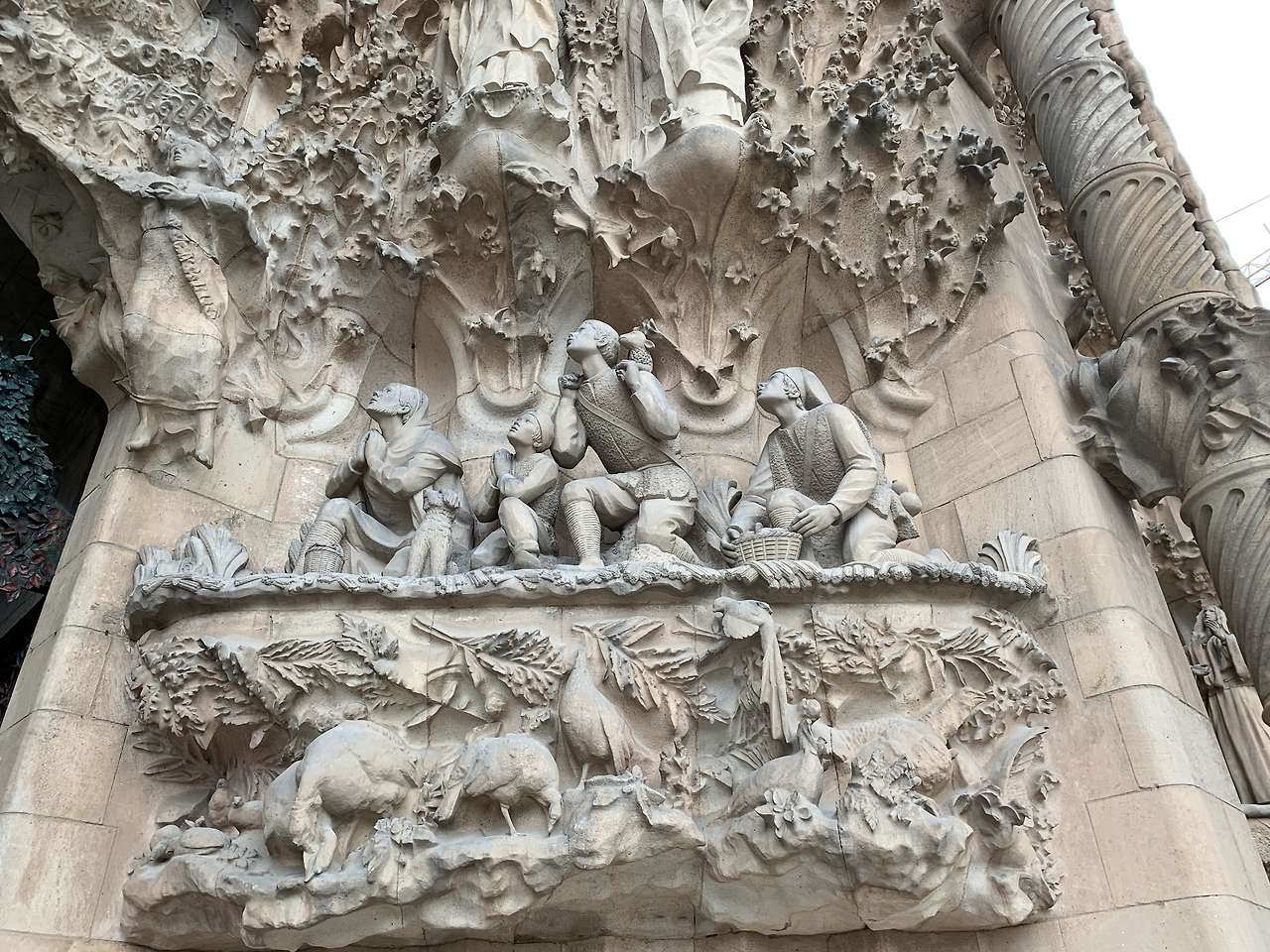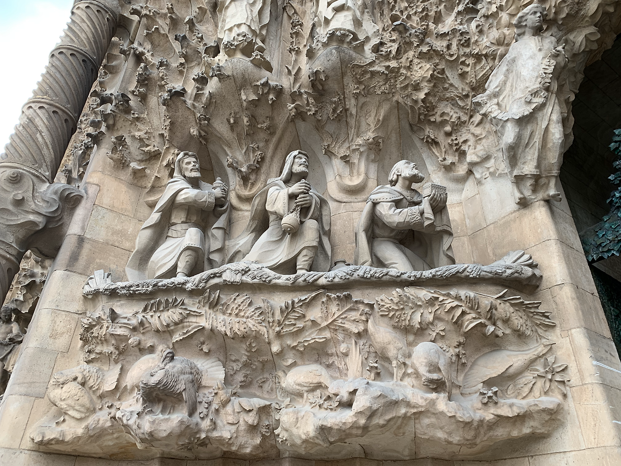 탄생의 파사드에는 예수가 탄생하여 그의 아버지 요셉과 어머니 마리아와 보낸 어린 시절이 파노라마처럼 새겨져 있었다. 이 파사드는 가우디 생전에 만들어진 유일한 것으로 돌에 새긴 성경이라 불렸다.