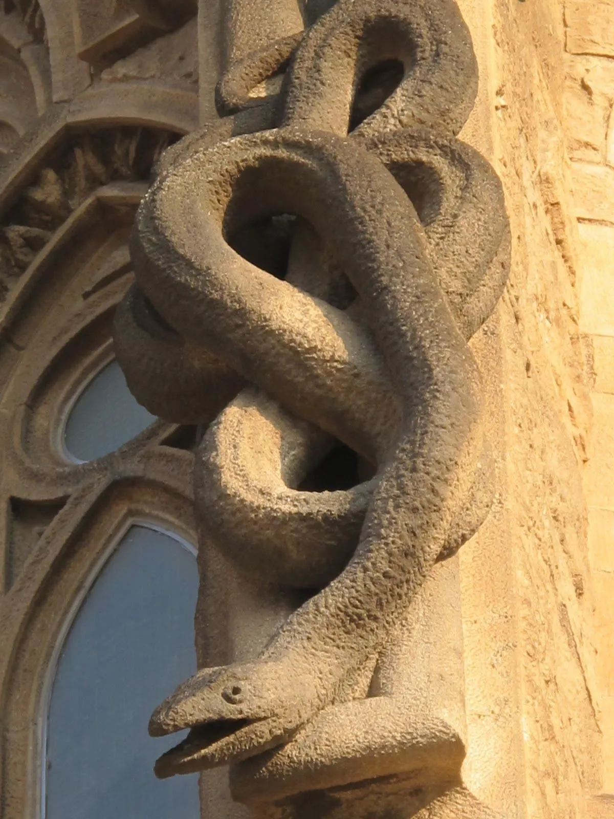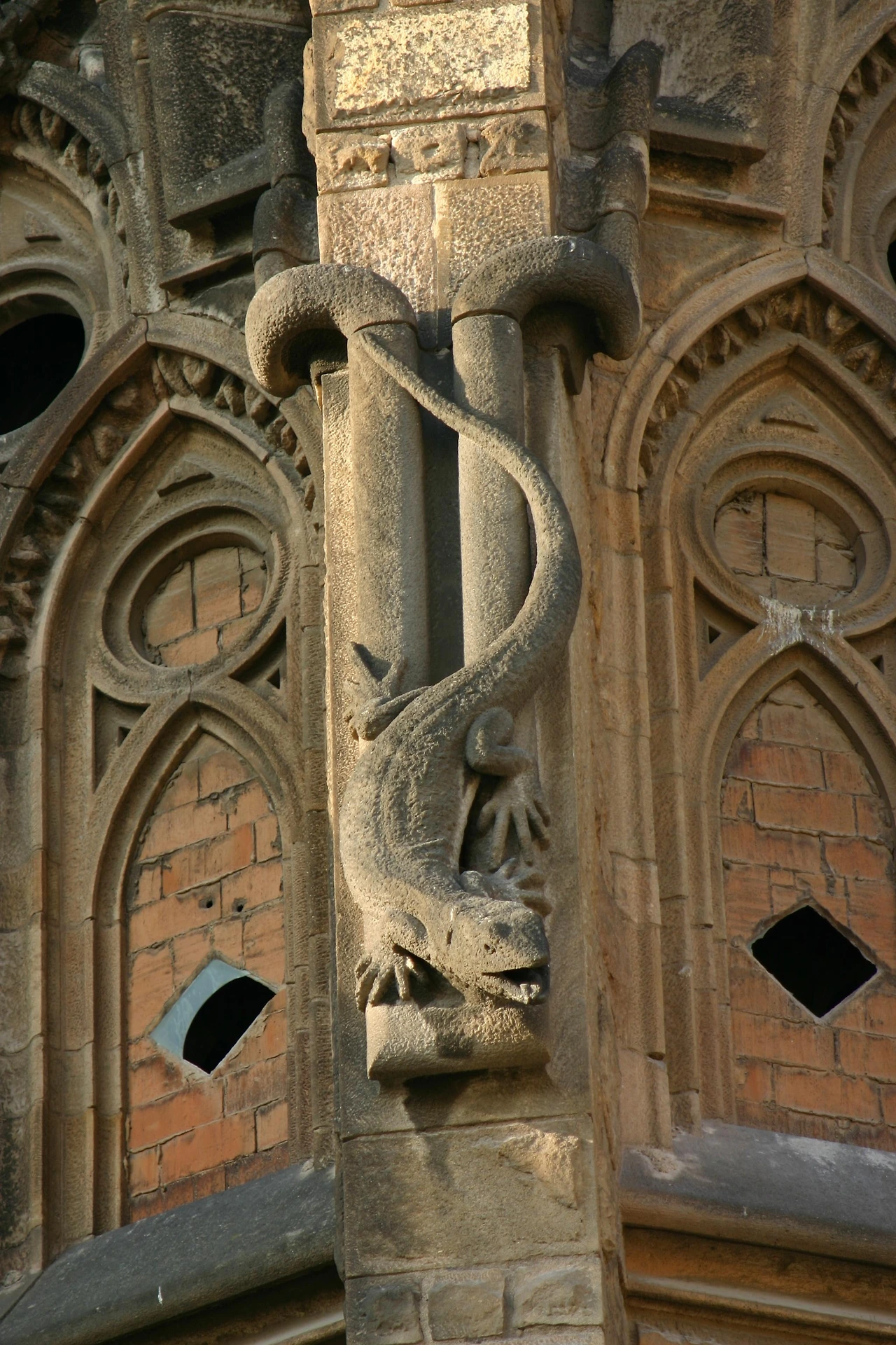 <수난의 파사드>와 <탄생의 파사드> 사이에는 중앙제단을 둘러싼 벽들이 있다. 이 곳에 <이상한 나라의 앨리스>에 온 것처럼 갖가지 동물들이 성당의 기둥을 기어오르고 있다. 기둥 밑부분의 거북이가 놀란 듯 입을 벌리고 도마뱀은 몸을 동그랗게 말고, 용은 노려본다. 성 가족 성당에 장식되는 사람과 동물들은 실제 모델을 두고 만들어졌다고 한다.