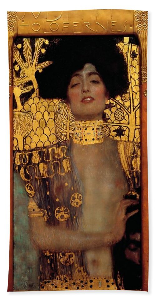 유디트는 유대를 포위한 아시리아 장군 홀로페르네스와 하룻밤을 보낸 뒤 그의 목을 베어 민족을 구했다는 전설 속의 여인이다. 클림트의 <유디트>를 보면 다른 작품에서처럼 영웅의 모습은 사라지고 유디트의 몽환적이고 에로틱한 얼굴이 연출되고 있다.