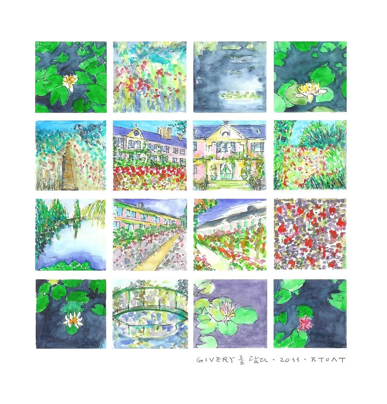 ‘빛의 화가’, ‘인상주의의 완성자’로 불리는 클로드 모네가 지베르니로 이사한 것은 1883년의 일로 그의 나이 43세 때였다. 처음 농가 한 채를 세 들어 살다가 집을 구입하고 정원을 꾸민 것은 1890년, 마침내 「루앙 대성당 연작」이 대성공을 거두자 길 건너편 땅까지 매입하여 연못을 파고 세느 강의 지류인 엪트 강물을 끌어들여 수련을 키우기 시작한 모네는 그의 전 생애의 딱 절반인 43년간을 이곳 지베르니에서 보낸다.