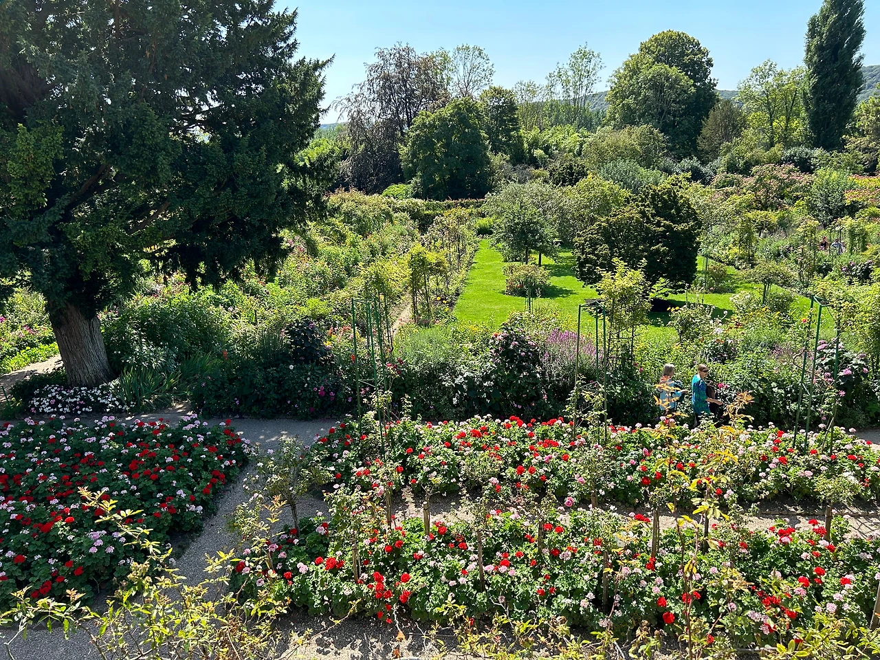 폭 좁은 나무계단을 통해 2층으로 올라가 보니 모네의 침실로 이어졌다. 남쪽과 서쪽 방향으로 난 유리창 앞으로는 ‘꽃의 정원’이 펼쳐졌다. 모네는 아침에 눈뜨자마자 저 유리창을 통해 정원을 내다봤을 것이다. 그리곤 아래층으로 내려가 그림을 그렸을 것이다.