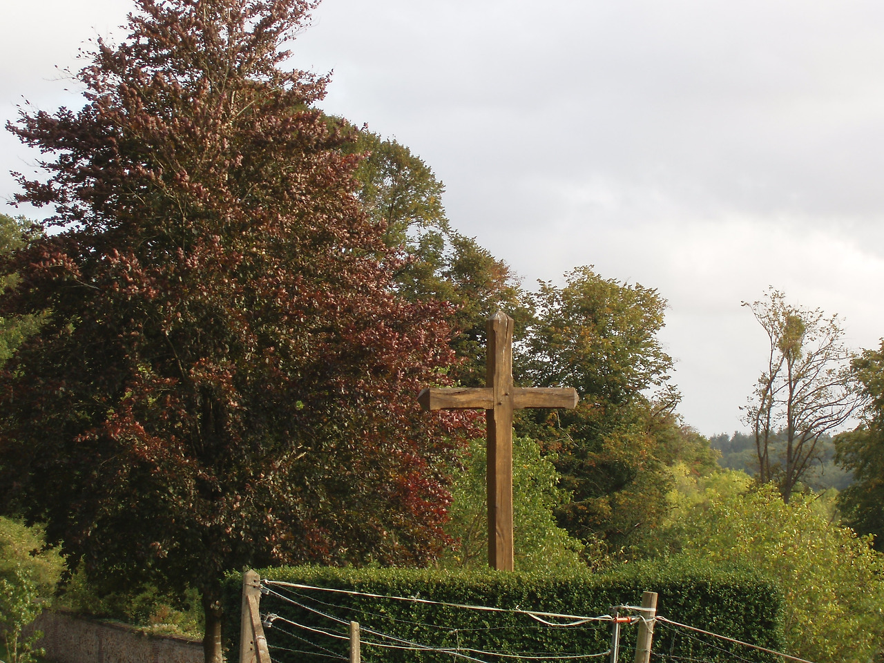 쥬미에쥬의 두 개의 종탑처럼 베켈루앵의 종탑도 마을을 상징하는 역사유적이란 점, 마을의 문장에도 니꼴라 탑은 마을 한가운데를 흐르는 베크 하천과 함께 등장했다. 길을 뒤돌아보니 먼발치에 나무십자가가 하나 서있다. 종교의 성지여서일까? 갈색 빛을 띤 나무십자가 역시 마을의 특징을 단적으로 암시해주고 있었다.