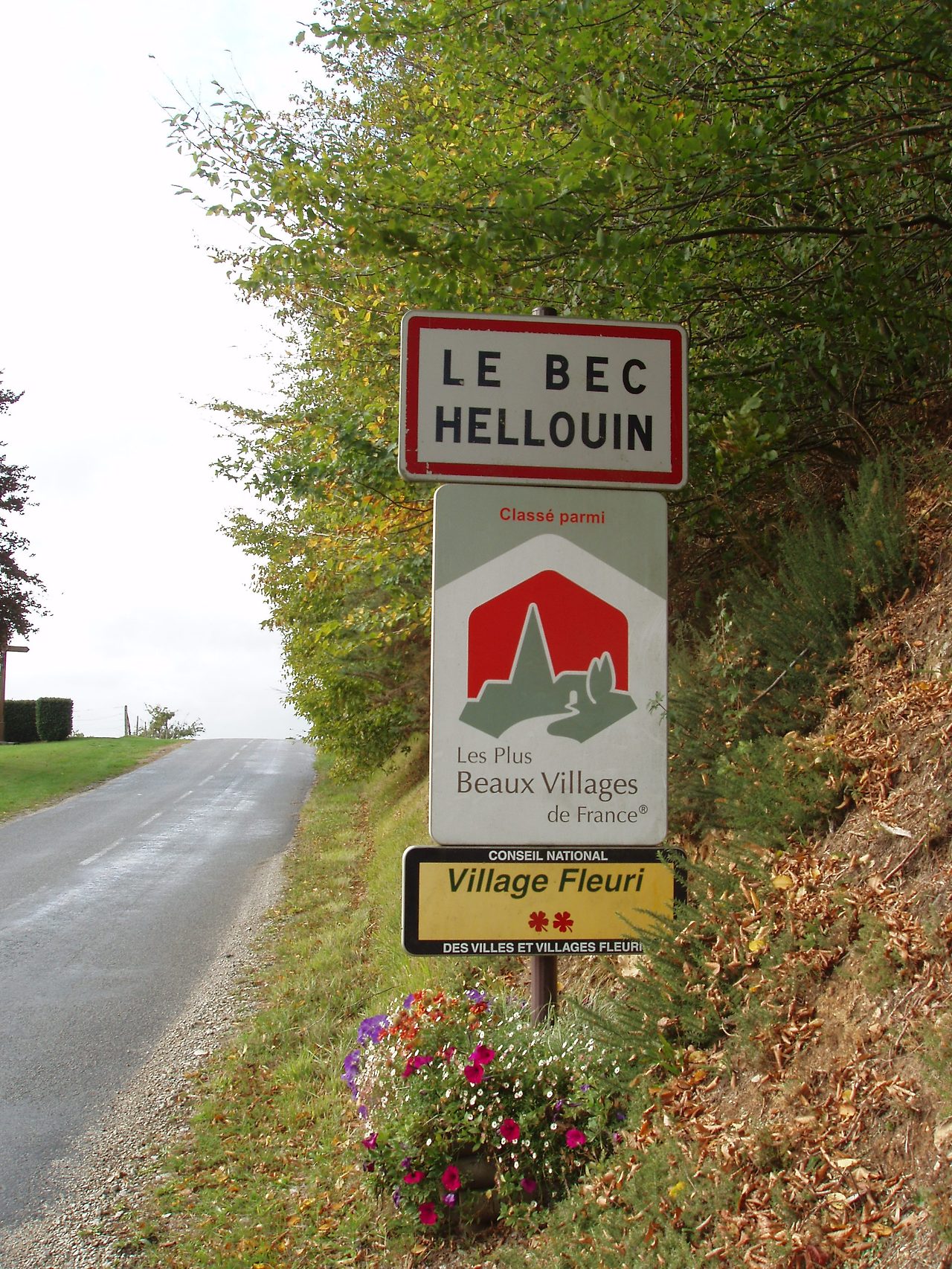 마을 이정표 하단에 새겨진 꽃 두 송이와 함께 이정표 상단에는 마을이름이, 그리고 그 밑의 가장 크고 넓은 표지판에는 마을 풍경을 단순화한 디자인과 함께 ‘클라세 파르미 / 레 쁠뤼보 빌라쥬 드 프랑스(Classé parmis / Les plus beaux villages de France)’란 문구가 적혀있다. 풀이하자면, 프랑스에서 아름다운 마을 가운데 한 곳으로 선정되었다는 뜻이다. 심사위원들은 여러 가지를 고려해서 베켈루앵을 선정했을 것이다.