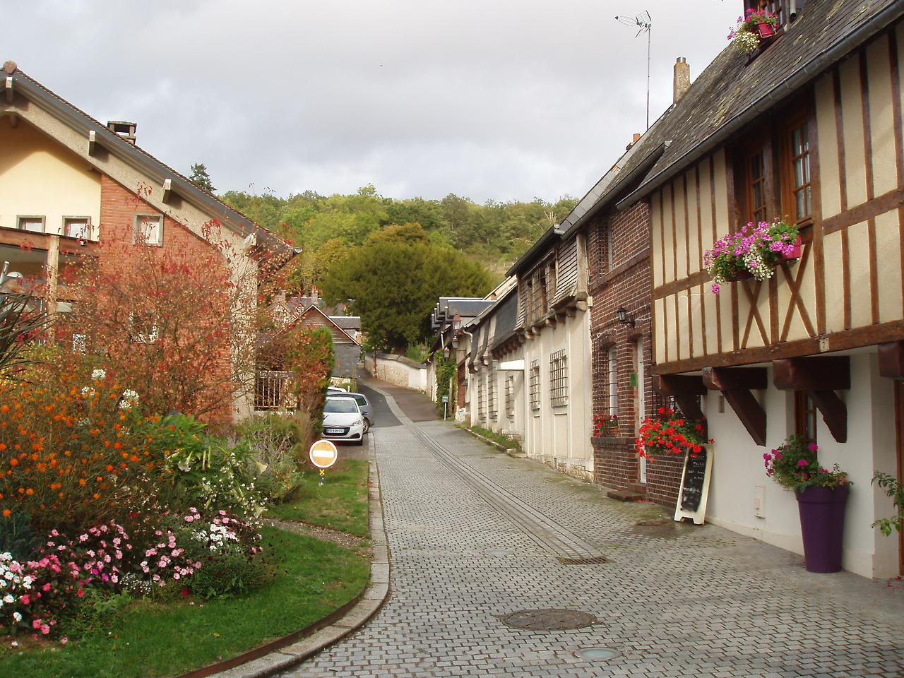 마을이 우선 궁금해서 견딜 수가 없었다. 일단 마을 한복판에 차를 세워두고 산책하는 것이 나을 성싶었다. 길가의 꼴롱바쥬로 지은 집들은 사진에서 보던 것보다도 훨씬 산뜻하고 정겹게 다가왔다.