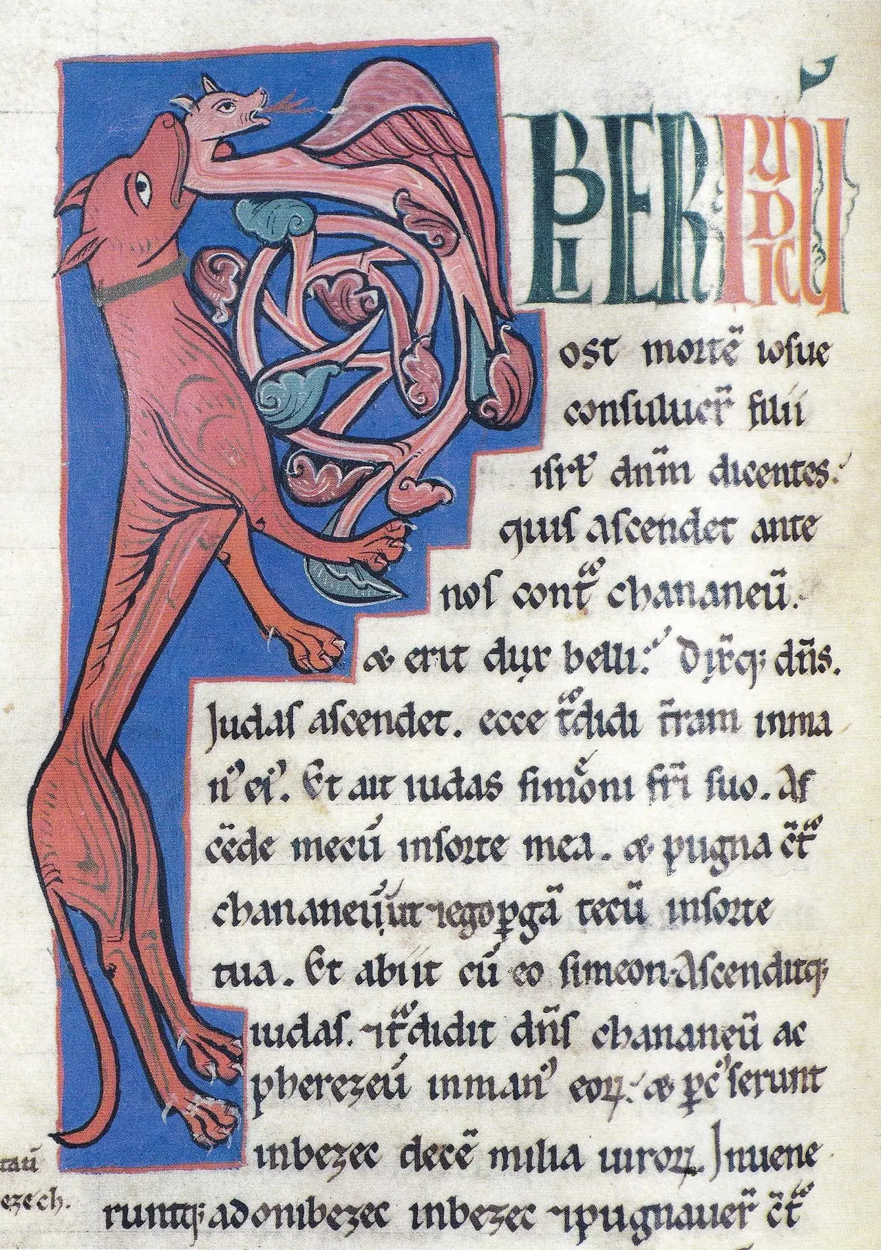 영국은 일찍부터 아일랜드의 세밀 화가들이 이룩한 탁월한 장식술에 경도되어 있었습니다. 이때가 12세기였는데, 이들은 이미 켈트 예술이 낳은 고유한 방식으로 수사본들을 제작하고 있었죠. 카롤링거 예술을 접하면서부터는 아일랜드의 스크립토리아(필사실)들은 일제히 일대 쇄신을 꾀하기 시작했습니다. 구태의 모호한 특징들을 과감하게 폐기하고 보다 구체적이고 사실적인 묘사로 나아갔는데, 이러한 취향에 맞춰 자연히 색조도 강렬한 빛을 띠어갔죠. 12세기에 캔터베리와 윈체스터와 같은 영국 남쪽 지역에서 아주 뛰어난 표현들이 가능할 수 있었던 것은 이들만의 고유한 양식이 개발되었기 때문입니다.