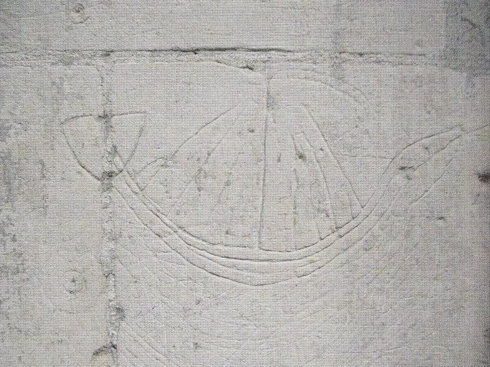 루앙 대성당의 후진 안에 있는 회랑 벽에 새겨진 낙서(13세기경으로 추정됨). [2]