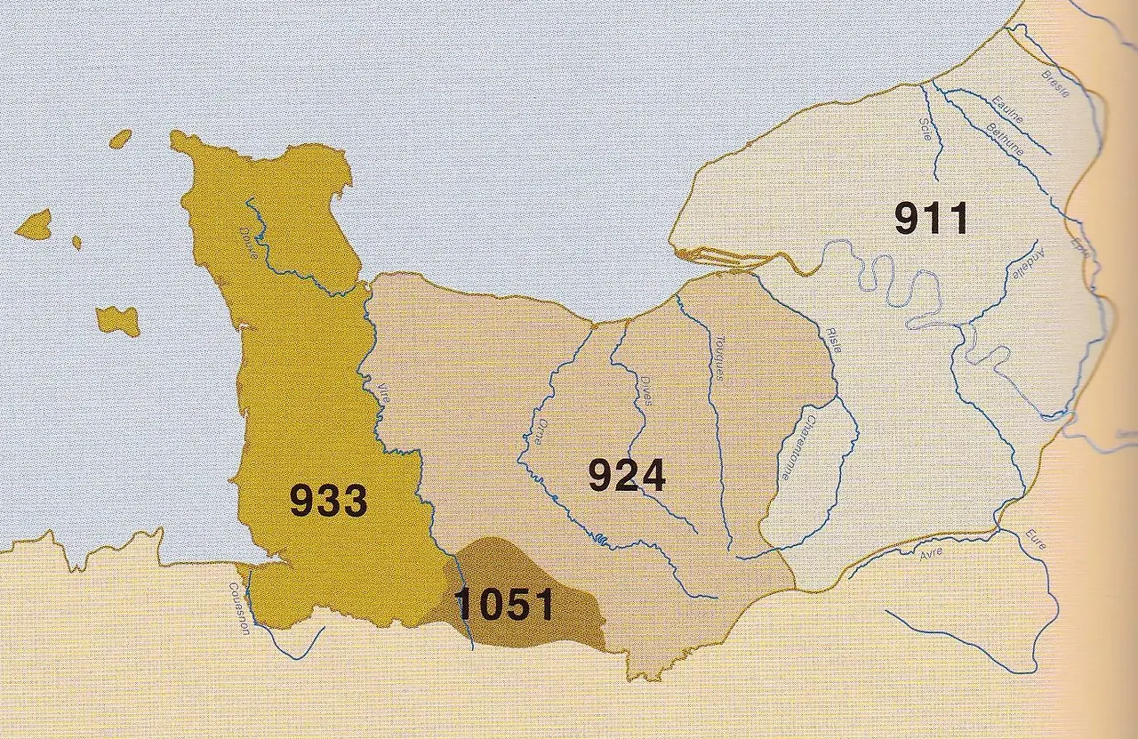 이에 따라 조공이 이루어지고 이미 루앙의 영향력이 확산되고 있는 이에무아와 브쌩 지역에 대한 양도가 이루어졌으리라 짐작됩니다. 게다가 노르망디의 경계는 더욱 확대되어 비르 지방에까지 이르렀습니다.