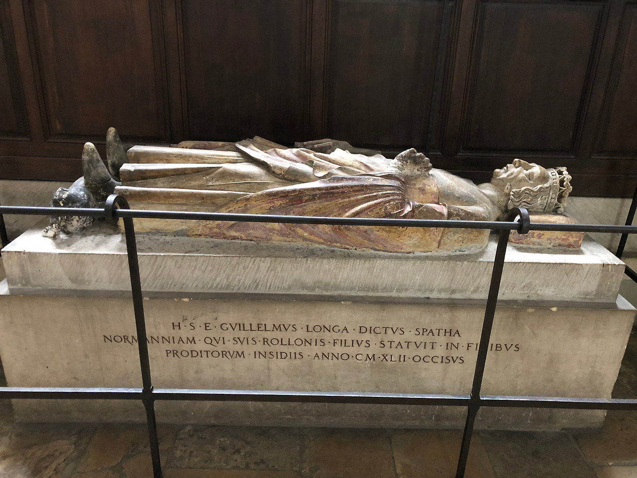 노르망디 인들은 그들의 백작을 성자이자 순교자로 여기고는 통곡했습니다. 시신은 열쇠로 채워진 관 안에 고이 모셔졌죠. 평소 종교적 축일 때마다 모습을 보이던 그에 대한 기억을 회상시키듯 고인이 된 기욤은 수도사의 복장을 단정히 차려입은 형상으로 관 뚜껑을 장식했습니다.