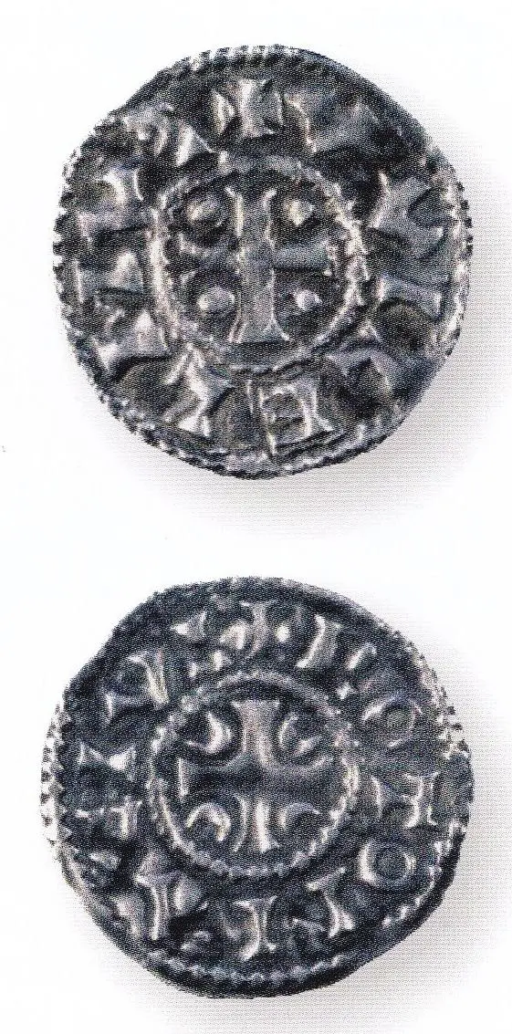 [1] 앞면에는 십자가 무늬와 함께 기욤(WIILEMUS)이라 적혀있고 뒷면에는 역시 십자가 무늬와 함께 루앙의 왕자(ROTOMAGUS)란 글자가 새겨져 있습니다. 쟈끌린느 삐레 르미에르 사진.