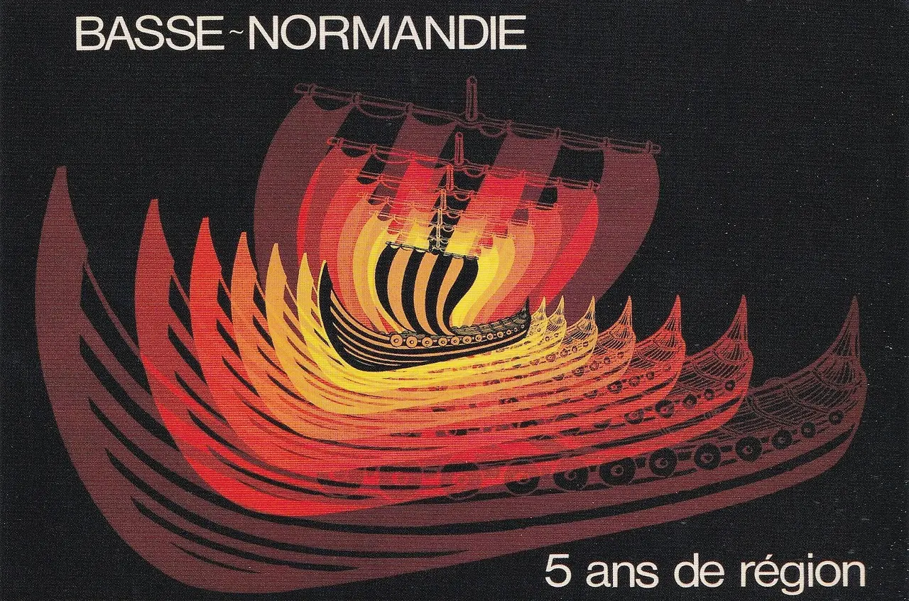 꺄망베흐 치즈 곽 뚜껑 디자인으로부터 노르망디 개인 사업체에서 사용하는 로고에 이르기까지 바이킹이 타고 다닌 배 디자인은 무수히 다양합니다. 심지어는 노르망디 광역단체의 로고로까지 등장하고 있습니다. 역사에 지대한 관심을 가진 사람들, 시인들, 콩트 작가들, 자치주의 지지자들 또한 단순히 스칸디나비아를 꿈꾸는 팬들에 이르기까지 그들 모두는 바이킹의 신화와 친해졌거나 아니면 그들의 현실에까지 투영시키고 있는 것이 사실입니다. 즉, 그들은 바이킹의 신화를 문학적 주제로 삼거나 간혹 정치적 목적을 위하여 신화를 이용하거나 심지어는 광고나 상업적으로 이용하고 있는 경우에 해당합니다.