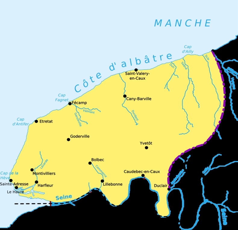 에트르타(Étretat)에서 생 발레리 앙꼬(Saint-Valéry-en-Caux)를 거쳐 훼깡(Fécamp), 끼베르빌(Quiberville), 바랑쥬빌(Varengeville), 디에프(Dieppe), 르 트레포(Le Tréport)까지 약 130킬로미터에 이르는 백악기 석회암으로 형성된 깎아지른 절벽이 이어지는 바닷길을 가리켜 이들은 꼬 지방(Pay de Caux)의 ‘알바트로스 해안(Côte d’Albâtre)’이라 부른다.