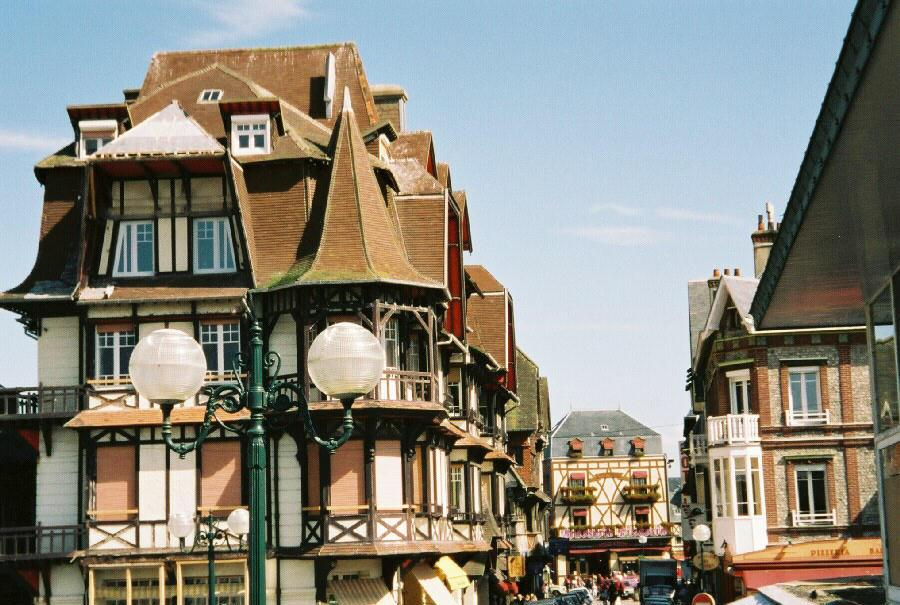 노르망디 꼴롱바쥬 건물은 좀 독특하다. 노르망디 지방의 농가는 원래 튼튼한 억새로 엮은 초가지붕 형태였는데, 도시에서는 이런 농가가 어울리지 않아 3층 이상 짜리 건물을 짓다 보니 자연 이 지방 특유의 꼴롱바쥬 건축술이 발달하기에 이르렀다. 그런 이유로 건물들을 가만히 뜯어보면 건물들이 다 다르다. 똑같은 건물이 단 한 채도 없다. 뭔가가 다르다. 남의 개성을 존중하면서 자신의 개성 또한 맘껏 드러내기를 좋아하는 유럽인들 답다! 그래서 거리를 산책하면서 이 건물 저 건물 올려다 보고 찬찬히 뜯어보는 재미가 쏠쏠하다. 그런 재미가 여행의 흥취를 한껏 북돋아준다.