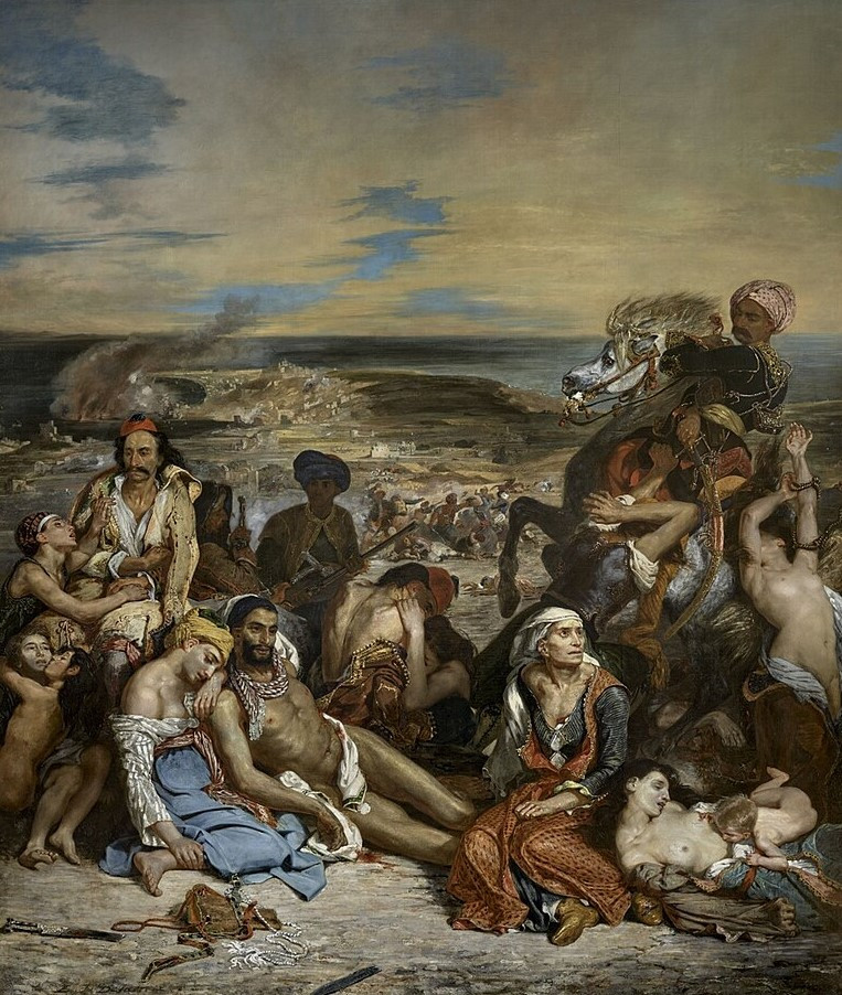 분명한 건 거의 대부분이 신고전주의적 질서와 귀족적 취미, 우아한 세계에 머물렀던 반면 그 경계를 무너뜨리고 경계를 넘어서서 ‘혁명’을 그림의 주제로 다루었다는 점만큼은 오늘날 야기되고 있는 소재주의라는 한계에도 불구하고 1830년대의 상황에서는 가장 혁명적이고 진취적인 사건 중의 사건이었던 셈이다. 이러한 작가의 시대 인식은 혁명에 대한 참여의식으로 더욱 고조되어 아름다운 세계 저 너머에 도사리고 있는 폭력과 광기의 고발이라는 또 다른 차원으로 진행하고 있다. 그것이 바로 「군주 사르디나팔의 죽음」에서 「키오스의 학살」로 이어지는 들라크루아만의 세계 인식이다.