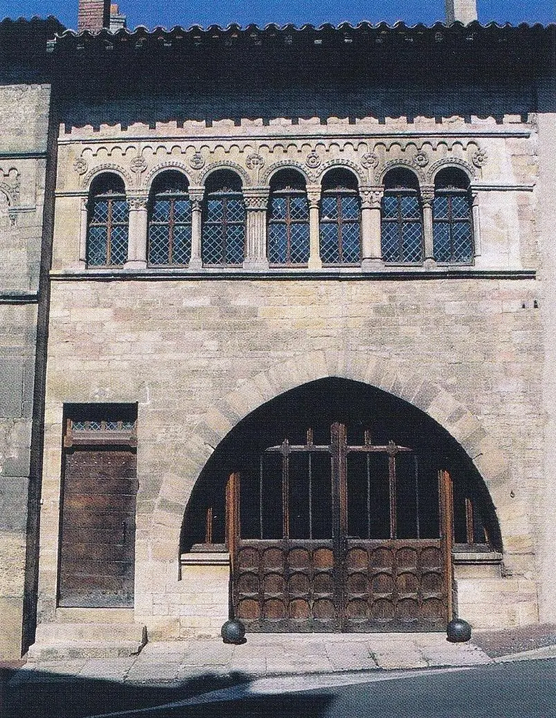 12세기로 거슬러 올라가면 길과 마주한 정면 부분은 지상층에 커다란 아케이드와 문이 나 있습니다. 그 위 2층 벽에는 일렬로 늘어선 살문 형태의 창문들에 의해 구멍이 뚫려있죠. 완전한 반원형 형태를 한 창문을 떠받치고 있는 기둥들은 제각각인데, 어떤 경우는 하나의 작은 원기둥이고, 어떤 경우는 쌍둥이 형태의 작은 원기둥이며, 이보다 굵은 기둥들이 서로 번갈아 가며 세워져 있습니다.