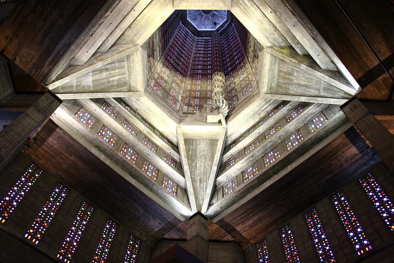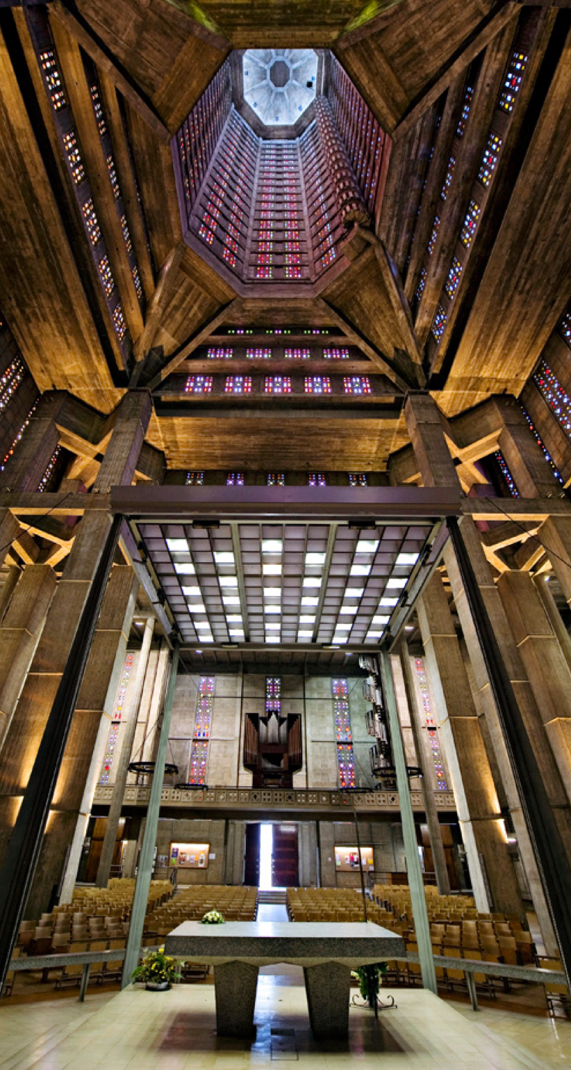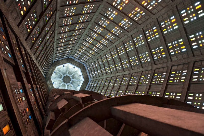 성당 내부는 그리스 나무 십자가 형상의 정사각형 한가운데 제단이 놓이고 제단 천장 바로 위로 높이 107미터 달하는 채광탑이 올라섰다. 콘크리트 거푸집을 막 걷어낸 듯한 거칠고 우악스러운 원시적 질감과 성당 내부 벽면의 분홍색 음영이 스며든 자갈 콘크리트 질감 외에는 그 어떤 장식적 요소도 찾아볼 길이 없는 곳이 성 요셉 성당이다.