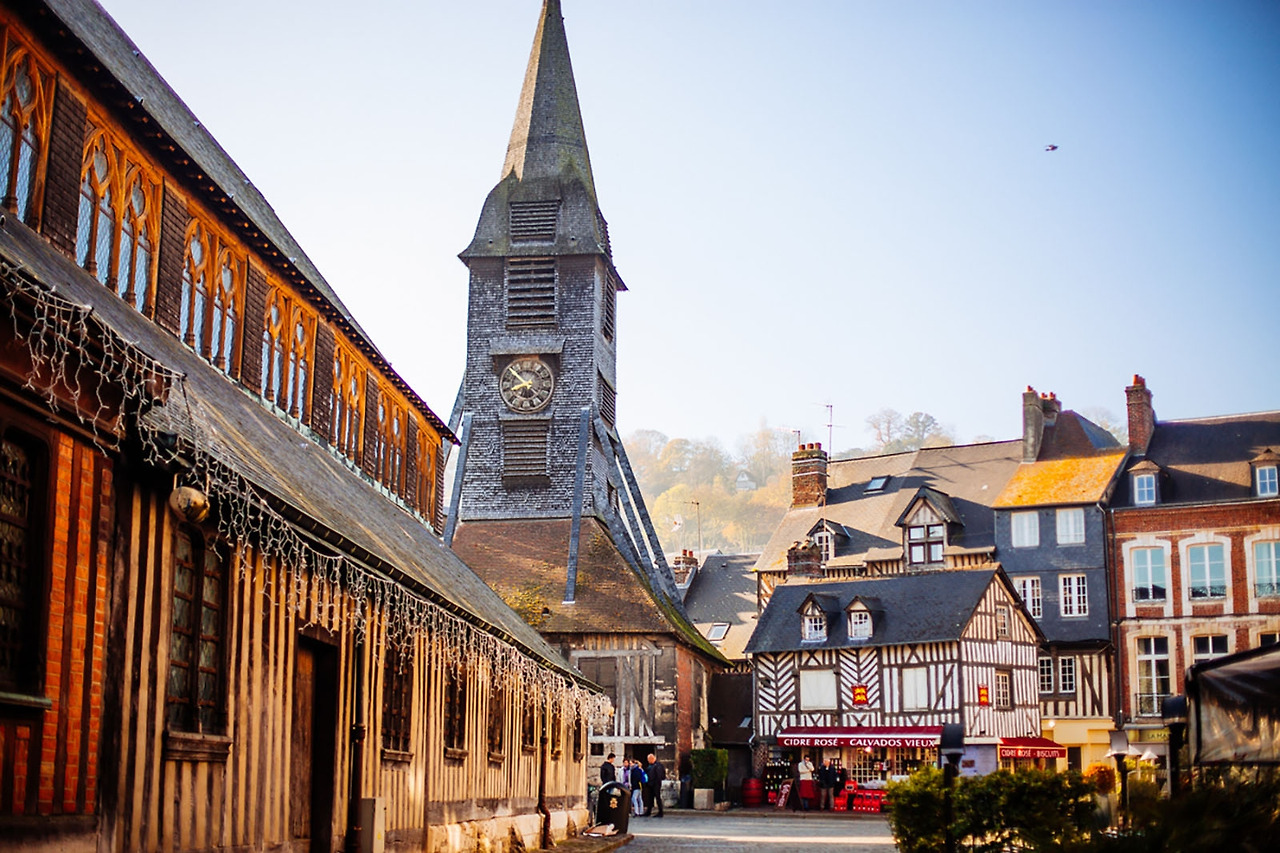 옹플뢰르의 중심은 카타리나 성당이다. 성당은 도심에서 제일 높은 곳을 자랑한다. 성당 주변으로 들어찬 목조 가옥들은 꼴롱바쥬 양식으로 지은 노르망디 지방, 그 가운데에서도 칼바도스 도(道)만의 독특하고도 아름다운 목조주택의 전형을 보여준다.