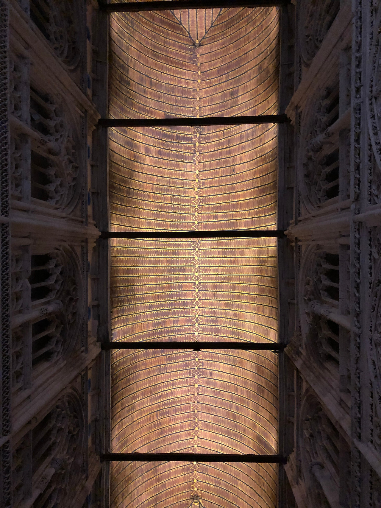 지금은 성가대석을 제외하곤 로마네스크 시기의 흔적을 거의 찾아볼 순 없지만, 천장 구조가 참으로 독특하다. 노르망디 종교 건축물답게 천장이 돌이 아니라 나무쪽을 이어 붙인 엎어진 배 형상이다. 이 역시 바이킹의 후손들이 지은 기독교 건축물임을 여실히 입증해 주고 있다.