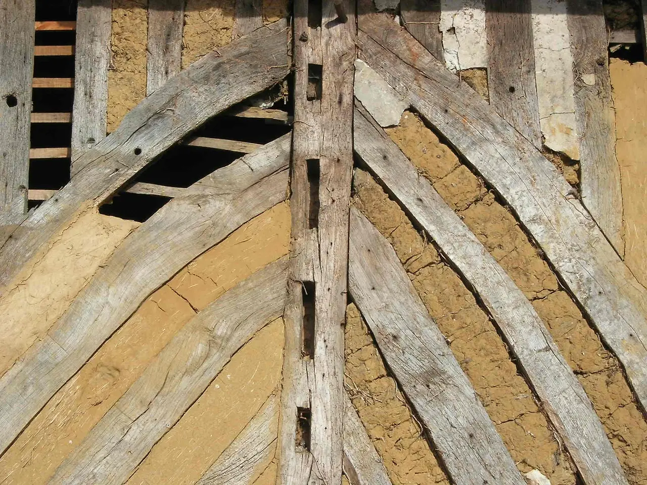 여행자로 하여금 바삐 핸드폰 카메라를 들이밀게 만드는 이 독특한 반 목조 가옥은 퐁레베크라 해서 예외는 아니다. 건물들 하나하나가 다 다른 모습에 경이로움까지 느끼는 것은 목수의 솜씨가 남다르기 때문일까? 서까래나 대들보, 기둥으로 쓰인 나무들은 자연 생김새 그대로 사용한 솜씨가 여간 예사롭지가 않다.
