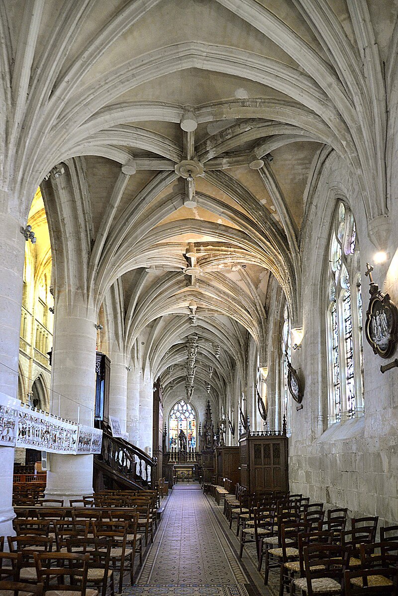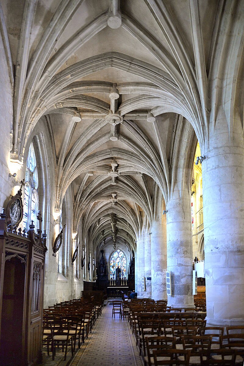 기둥머리 장식 하나 없는 밋밋한 원통형 기둥도 이채롭다. 이제까지 봐오던 성당과는 너무나 대조적인 이유가 뭘까 하고 성당에 관한 역사 기록물들을 검토해 보니 성당의 개축 공사가 15세기로 거슬러 올라간다. 주교의 요청에 따라 종끄레 드 훼리에흐(Joncquerets de Ferriére)와 끌레흐몽 앙노쥬(Clermont-en-Auge)의 남작이었던 장 5세(Jean V de Pouchin)의 봉헌금으로 지어진 탓에 아마도 공사 대금이 충분치 않아 저렇듯 밋밋한 원통형 기둥으로 마감했으리라 짐작되는 대목이다.