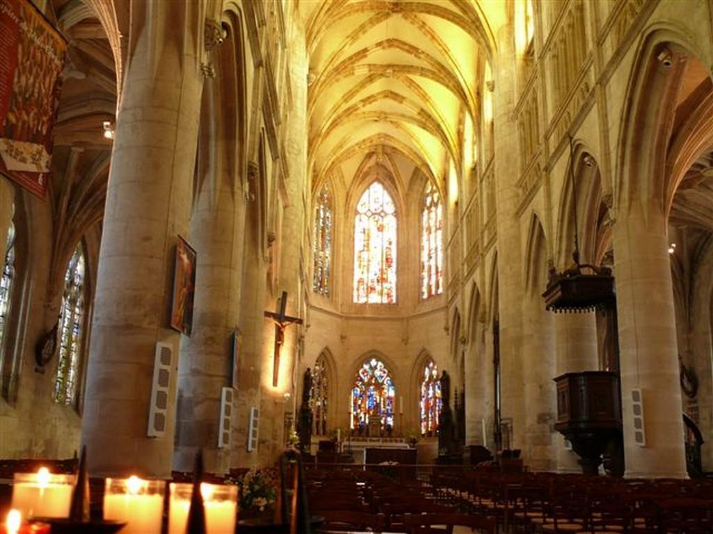 13세기에 지은 종탑은 서쪽 파사드(정문 입구)에 세워졌다. 본당 건물은 14세기 때 석회암을 쌓아 올린 것으로 그 육중함이 대단하다. 목초지(bocage) 멀리에서도 한눈에 보이는 성당의 모습은 고딕 양식의 건축물들이 그러하듯 장엄하고 묵직하다. 이런 이유로 ‘초원의 대성당(la cathédrale du près)’이란 별명까지 얻었다.
