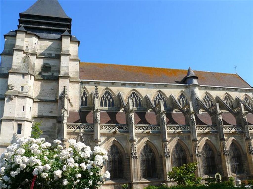 퐁레베크(Pont-l'Évêque) 마을을 가로지르는 뚜크 강둑에 우뚝 서있는 성미카엘에게 봉헌된 퐁레베크 천주교회는 11세기 원래 노르망디 로마네스크 양식으로 지은 성당이 있던 자리에 15세기에 들어와 고딕 화염 양식으로 새롭게 지은 성당이다. 성당은 도심 한복판에 위치한 그야말로 마을의 상징으로 자리 잡았다. 마을에서 제일 높은 건축물이기 때문이기도 하다.