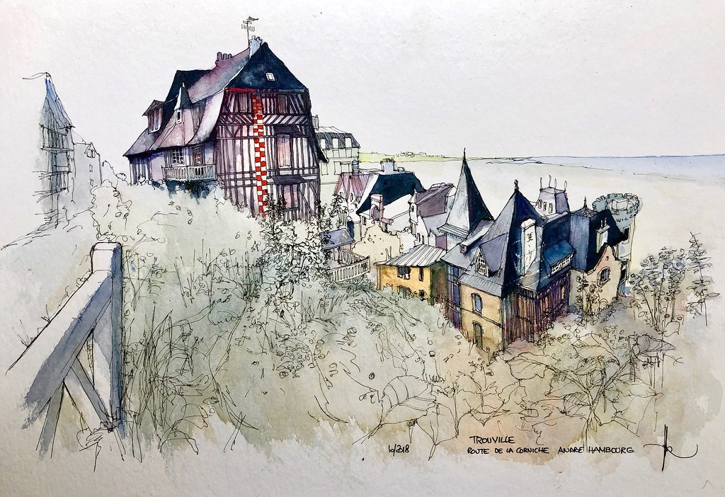 나 역시도 여기서 많은 글을 썼고 새로운 글에 대한 영감을 얻기까지 했다. 심지어는 나의 반려자 옆에서 그림을 그리면서 역사 기행 에세이를 풀어갈 것까지 구상한 것이다. 그렇듯 지금 연재하고 있는 여행 에세이의 시작도 트루빌에서 시작되었다.