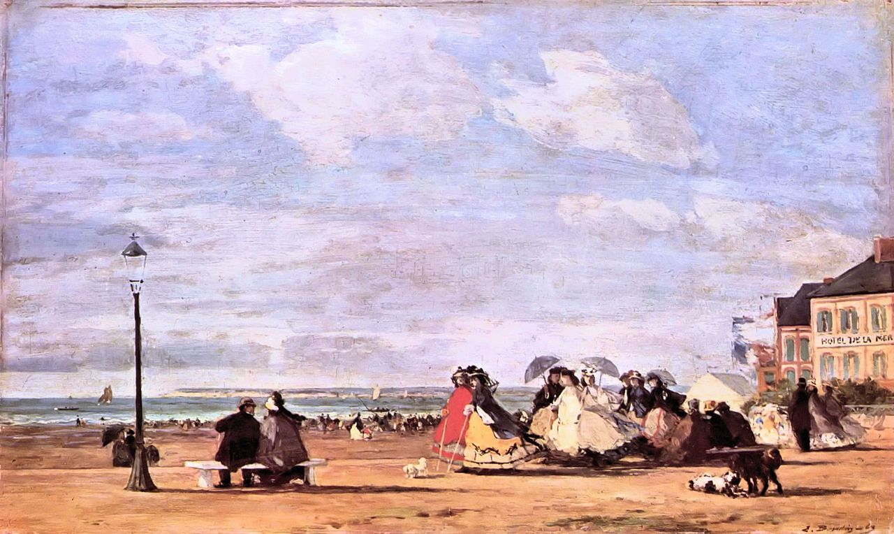 으젠 부댕(Eugène Boudin), 트루빌 백사장(La Plage de Trouville), 1864, 파리 오르세 미술관(Musée d'Orsay).