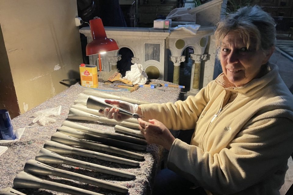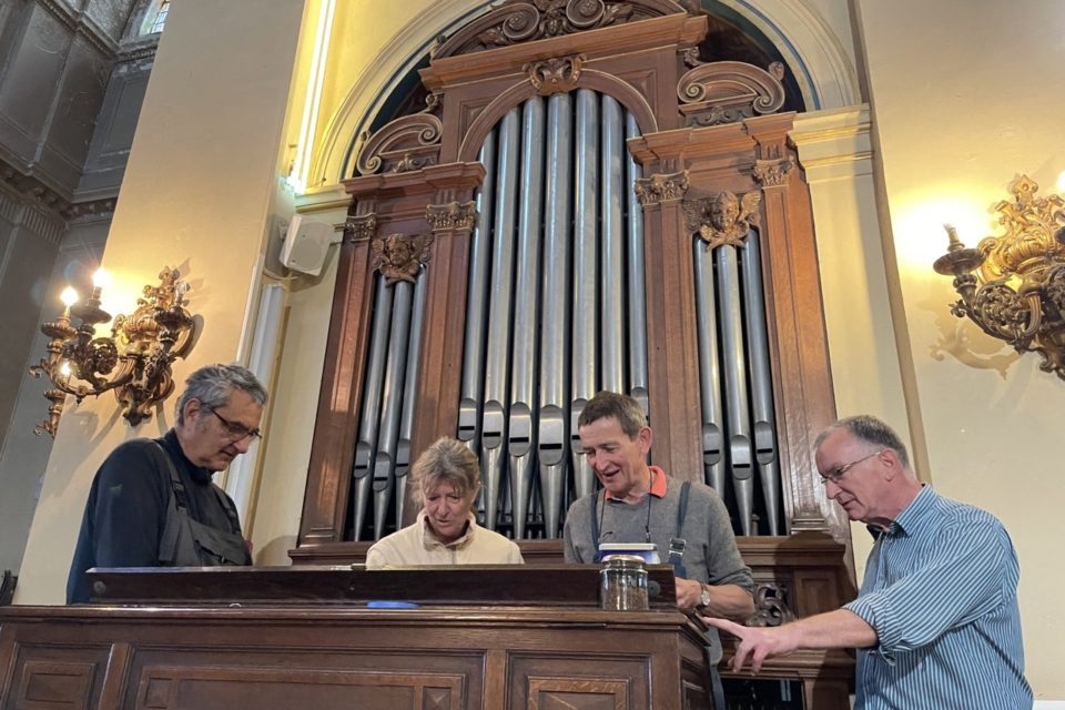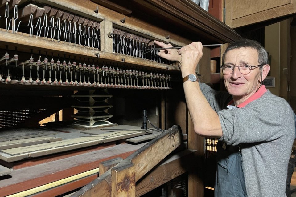 19세기에 제작된 파이프오르간을 정비하고 있는 모습, 지역 미디어 우에스트 프랑스(Ouest-France)에서 인용.