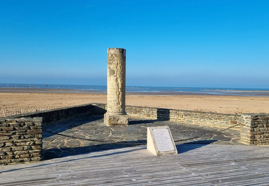 울가트 해안에 서 있는 1066년 영국을 향한 기욤 선단의 출항을 증언해 주는 기념비. J. 클라라 훼랑(Clara Ferrand) 사진.