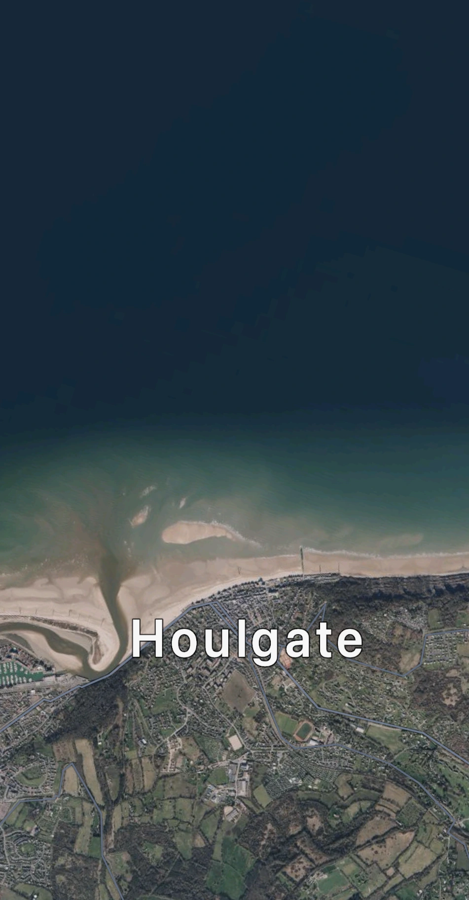휴대폰이 찾아낸 바다, 인공위성에서 내려다본 울가트(Houlgate) 디브(Dives) 만(灣) 풍경.