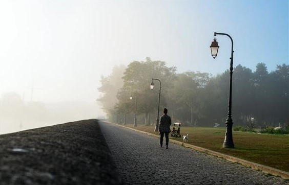 그는 지금 안갯속을 걸어간다. 바다와 면한 강둑길을 걸어가고 있다. 가로등은 길 한쪽 부분만 비추는지 운하 쪽에는 가로등이 없다. 걸어가는 이는 고개를 수그린 모습도 아니고 그저 앞만 응시하면서 걸어가는 모습도 아니다. 그는 어딘가를 바라보고 있다. 일상의 걸음인지 산책의 걸음인지 분간이 안 될 정도다. 그러나 나는 사진을 보면서 그의 발걸음을 ‘산책’으로 규정한다. 이들이 즐겨 읊조리는 프로므나드(Promenade)!