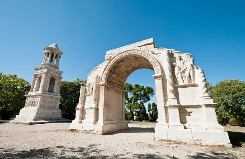 도미티아의 길로 불리던 ‘비아 도미티아(Via Domitia)’의 교차로에 있는 개선문은 이 도시가 로마 제국 시대에 발전을 거듭했음을 상징하는 표지다. 그 옆에는 이 도시에서 태어난 토착 엘리트의 일원이었던 쥴리(Julii)를 기념하기 위한 영묘가 세워졌으며, 특히 갈리아 전쟁 중에 로마 제국은 이 도시를 제국의 명예를 드높인 군사 협력 도시로 지정하고 지원을 아끼지 않았다.