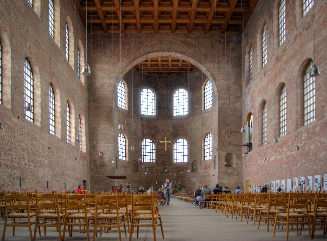원형 천장은 프랑스에서처럼 후진의 회랑들이 층층이 들어선 곳을 향해 내진이 십자형으로 교차하는 지점, 그 중심에 우뚝 들어선 커다란 탑 위에 얹힌 형태와는 사뭇 다릅니다. 후진들이나 회랑 네 귀퉁이에 자리 잡은 망루들 역시 신성 로마 제국의 교회 건축물에서만 발견되는 징후들입니다. 이 시기의 건축가들은 또한 내진을 설계함에 있어서 서양식으로 엄청나게 육중한 수직으로 뻗어 올라간 건축물에 집착합니다. 트리어 바질리크 대성당은 이를 여실히 예증해 주는 좋은 본보기입니다.