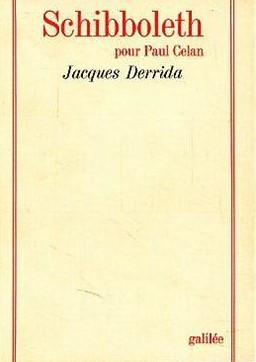 데리다 역시 이러한 작업으로부터 조금도 비켜서 있질 않다. 그는 탁월한 루마니아 태생의 유태계 시인이면서, 그럼에도 불구하고 파울 안첼(Paul Antshel)이란 독일 식 이름과 폴 셀랑(Paul Celan)이란 프랑스식 이름을 함께 지닌 한 시인에게 주의를 집중하였는데, 데리다는 울름 거리에 위치한 고등사범대학에서 강의를 할 때, 시인을 처음 알게 되어(시인 셀랑은 1959년부터 1970년까지 이 대학의 독일어과 강사로 재직했다) 셀랑의 텍스트를 처음으로 접하게 되었고, 또한 셀랑의 두 번째 시집 『고비 고비마다(De seuil en seuil / Von Schuvelle zu Schuvelle)』에서 표제어 구실을 하고 있음은 물론, 몇 년 뒤에 다시 간행된 시집 『익명의 장미(La Rose de personne)』(1963)에 다시 등장하고 있는 ‘쉬볼렛(Shibboleth)’이란 단어에 정신이 얼어붙는 충격을 받기에 이른다. 그 결과 1984년 시애틀에서 있은 심포지엄 석상에서 발제 되어 강연에 이른 데리다의 중요한 문건 『쉬볼렛(Schibboleth)』이 씌어지고, 1986년에 이르러서는 심포지엄 책자와는 다른 형태의 또 한 권의 시집으로 간행되기에 이른다.