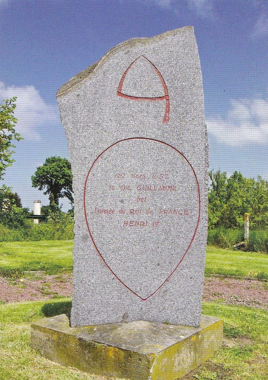Stèle commémorative de la bataille de Varaville.jpg 노르망디 공작인 기욤이 프랑스 국왕 앙리를 상대로 전투를 치른 바라빌 전적비.