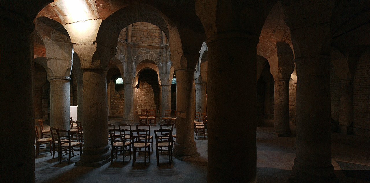 11세기 앵드르(Indre) 지방의 뇌비 생 세퓔슈흐(Neuvy Saint Sépulchre)에 세워진 수도원 성당 원형 천장, 프랑스.
