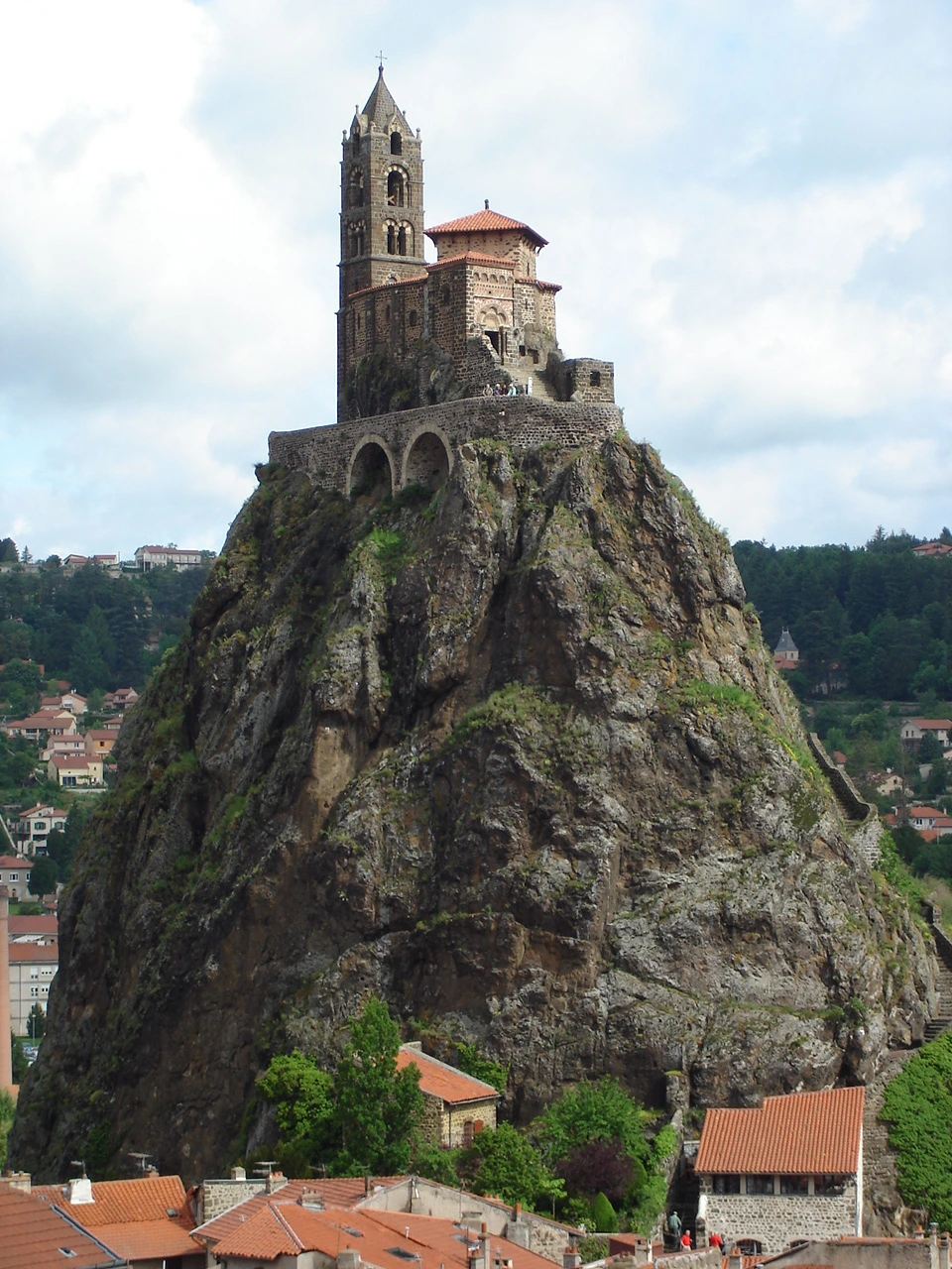 퓌 앙 블래(Puy en Velay) 인근 애길레(Aiguilhe) 성 미카엘 성당과 이슬람 건축에서 영향 받은 장미꽃잎 문양 아치, 프랑스.