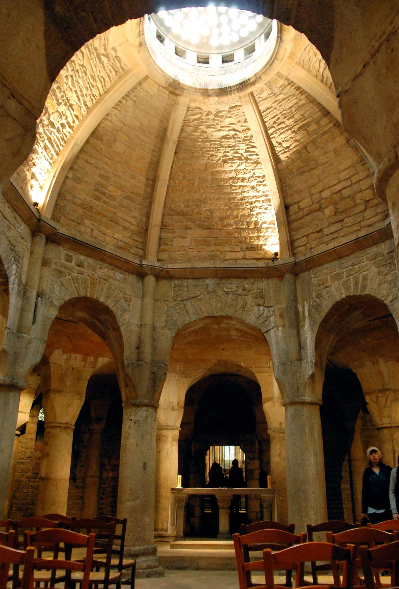 예루살렘에 있는 예수부활교회(Anastasis)의 콘스탄티노플 복사판이라 할 수 있는 원형 천장과 기둥으로 된 건축물은 서로마 제국과 전기 로마네스크 건축물에서 빈번하게 차용된 모델입니다. 12세기에만 서양에 50여 개가 넘는 교회들이 이와 같은 방식으로 지어졌는데, 이름이 모두 ‘예수의 무덤’을 뜻하는 성묘(Saint Sépulcre) 성당이라는 이름을 채택하였습니다. 이들 가운데 상당수가 예루살렘 성지순례에서 귀환한 뒤에 지어진 건축물들입니다.