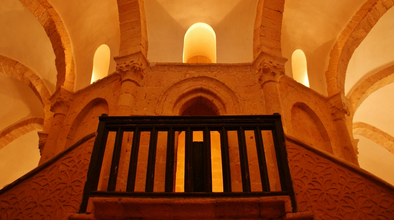 고고학자이면서 역사가인 피에르 퐁시슈는 쿠사의 산 미구엘(성 미카엘) 수도원 성당에서 이러한 영향관계를 확인하였는데, 수도원은 교회뿐만 아니라 안뜰과 삼위일체의 원형 천장과 함께 성묘에서 발굴한 성골들을 보관하고 있는 유서 깊은 곳입니다.