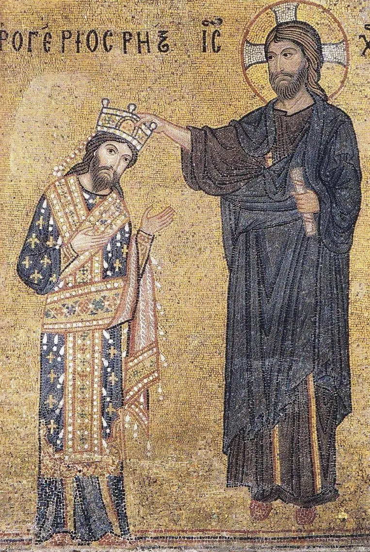 국왕 로제르 2세는 시칠리아의 첫 번째 왕으로서 로로스의 옷을 입고 장신구가 달린 관을 쓰고 있습니다. 비잔틴 군주의 모습입니다.