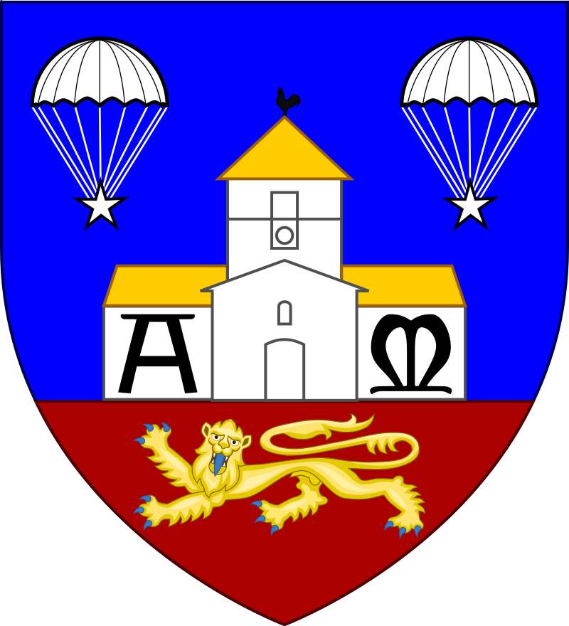 영화 한 편보다도 미 공수부대 요원 한 사람의 웃지 못할 해프닝이 만들어 낸 전쟁의 에피소드는 이 마을의 문장에까지 고스란히 새겨져 있다. 마을 이름에서 알 수 있듯이 문장엔 교회가 있고, 교회 종탑 끝부분에는 프랑스를 상징하는 수탉이 자리하고 있으며, 교회 아랫부분엔 알파(A)요 오메가(Ω)가, 교회 지붕 좌, 우측으로는 별과 함께 낙하산 2개가 펼쳐져 있다. 이 모두를 노르망디를 상징하는 황금 사자가 지켜보고 있다.