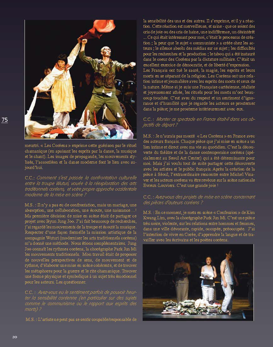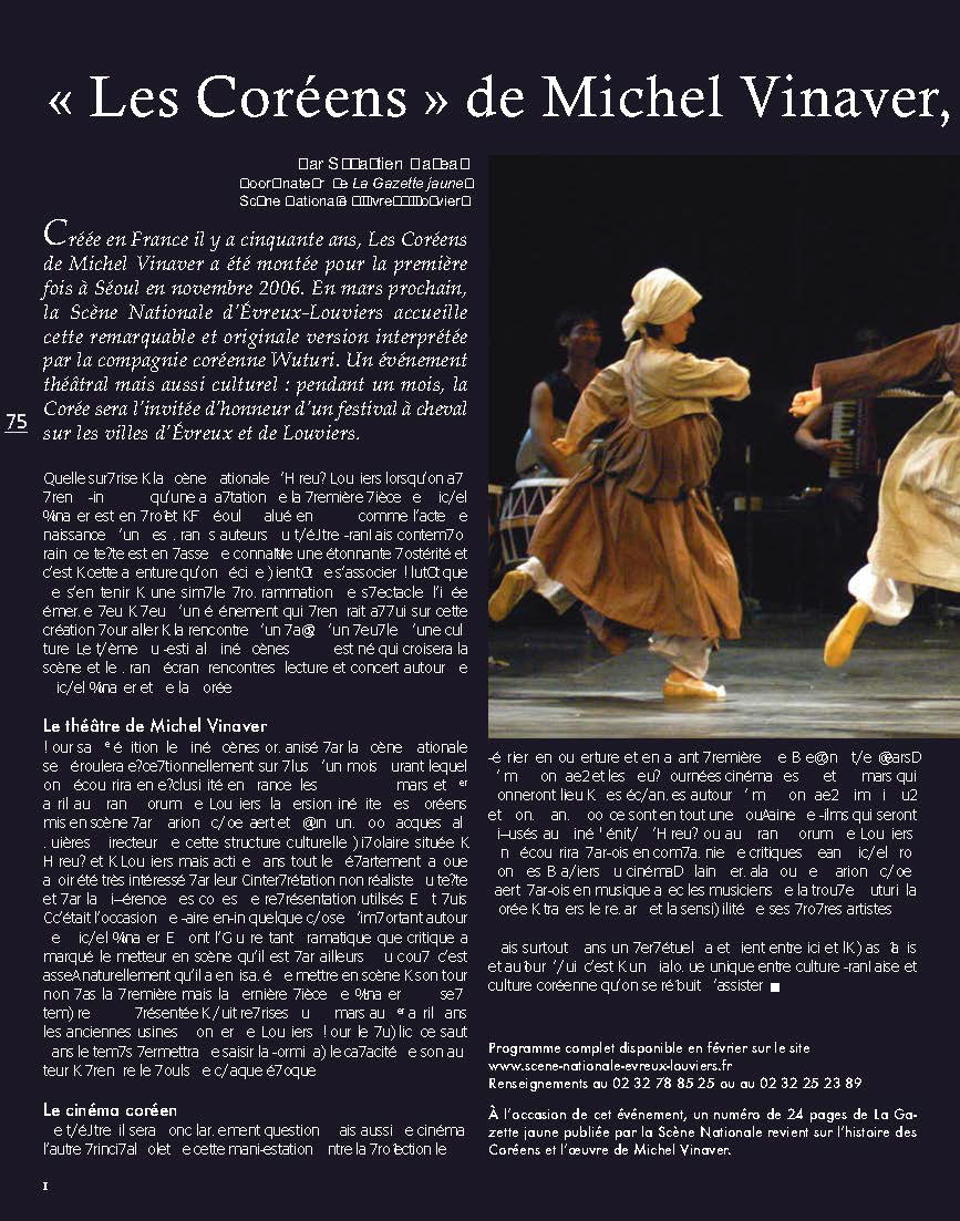 같은 해 3월 10일, <투쟁(Combat)>지는 세 번째 공연 작품의 주제에 대해 그와 같이 마튜 갈레(Mathieu Galley)의 평론을 싣고 있다.