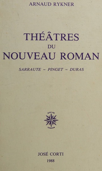 따라서 이 장에서는 오로지 그와 같은 개념에 의거한 희곡 작품들을 일별하는 것으로 국한하고자 한다. 그러나 그렇다고 해서 1988년의 탁월한 에세이를 통해 아르노 리크네흐(Arnaud Rykner)가 제시했던 ‘누보로망 극(Théâtre du Nouveau Roman)’을 간과할 수는 없을 것이다. 아르노 리크네흐의 에세이집은 쉬라스와 뺑제, 샤롯트 등을 다룬 저술이다.